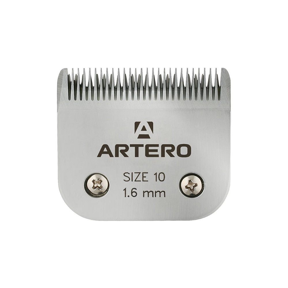 Cutit metalic nr.10 Lungimea firului tuns: 1.6 mm Acest tip de cutit este folosit la majoritatea tipurilor de rasa. Produs marca ARTERO, o companie spaniola fondata in 1909 si specializata in ingrijirea animalelor de companie Pentru pastrarea cutitelor intr-o perfecta stare si folosirea acestora o perioada cat mai indelunga, va recomandam ca dupa fiecare utilizare sa le pastrati in cutia speciala de spalare si dezinfectare Artero (cod: A568) in care ati turnat solutia Artero pentru splalarea si lubrifierea cutitelor (cod: A453). Iar in perioade de lucru intens folosirea Spray-ului refrigerant Oil Fresh (cod: Y447) din gama Artero este esentiala, acesta raceste cutitele, prevenind astfel arsuri accidentale pe pielea animalelor. Pentru ascutit va recomandam: Attila Kovacs, Tel: 0745199862