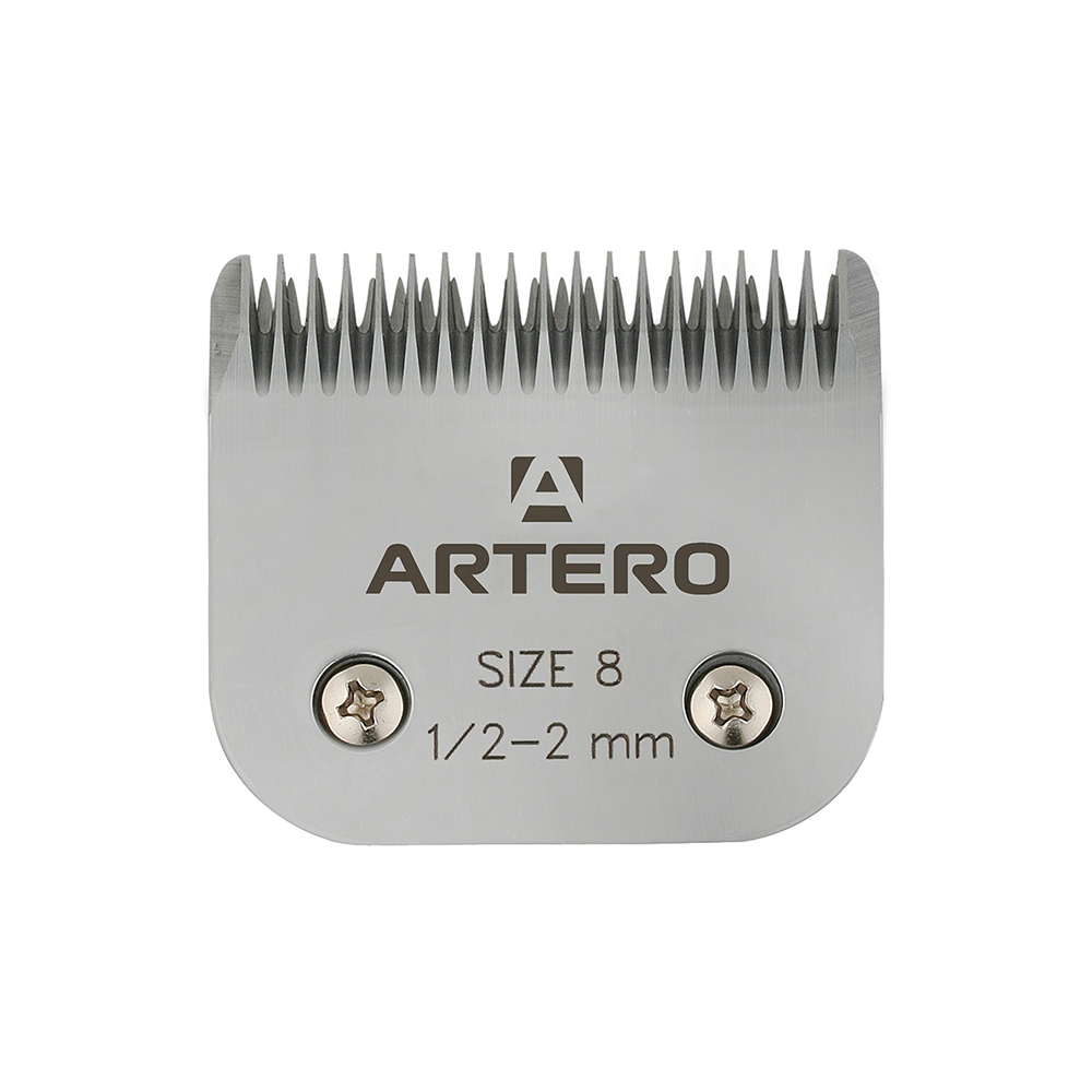 Cutit metalic nr.8 1/2 Lungimea firului tuns: 2 mm Produs marca ARTERO, o companie spaniola fondata in 1909 si specializata in ingrijirea animalelor de companie Pentru pastrarea cutitelor intr-o perfecta stare si folosirea acestora o perioada cat mai indelunga, va recomandam ca dupa fiecare utilizare sa le pastrati in cutia speciala de spalare si dezinfectare Artero (cod: A568) in care ati turnat solutia Artero pentru splalarea si lubrifierea cutitelor (cod: A453). Iar in perioade de lucru intens folosirea Spray-ului refrigerant Oil Fresh (cod: Y447) din gama Artero este esentiala, acesta raceste cutitele, prevenind astfel arsuri accidentale pe pielea animalelor. Pentru ascutit va recomandam: Attila Kovacs, Tel: 0745199862