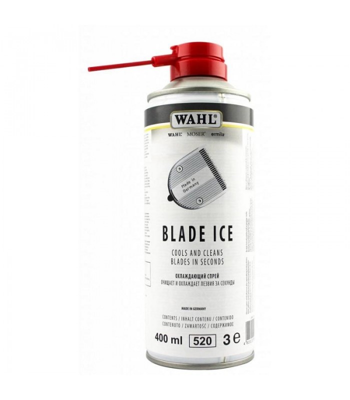 Spray-ul Wahl Blade Ice este destinat să răcească, să dezinfecteze și să lubrifieze lamele mașinilor de tuns câini.